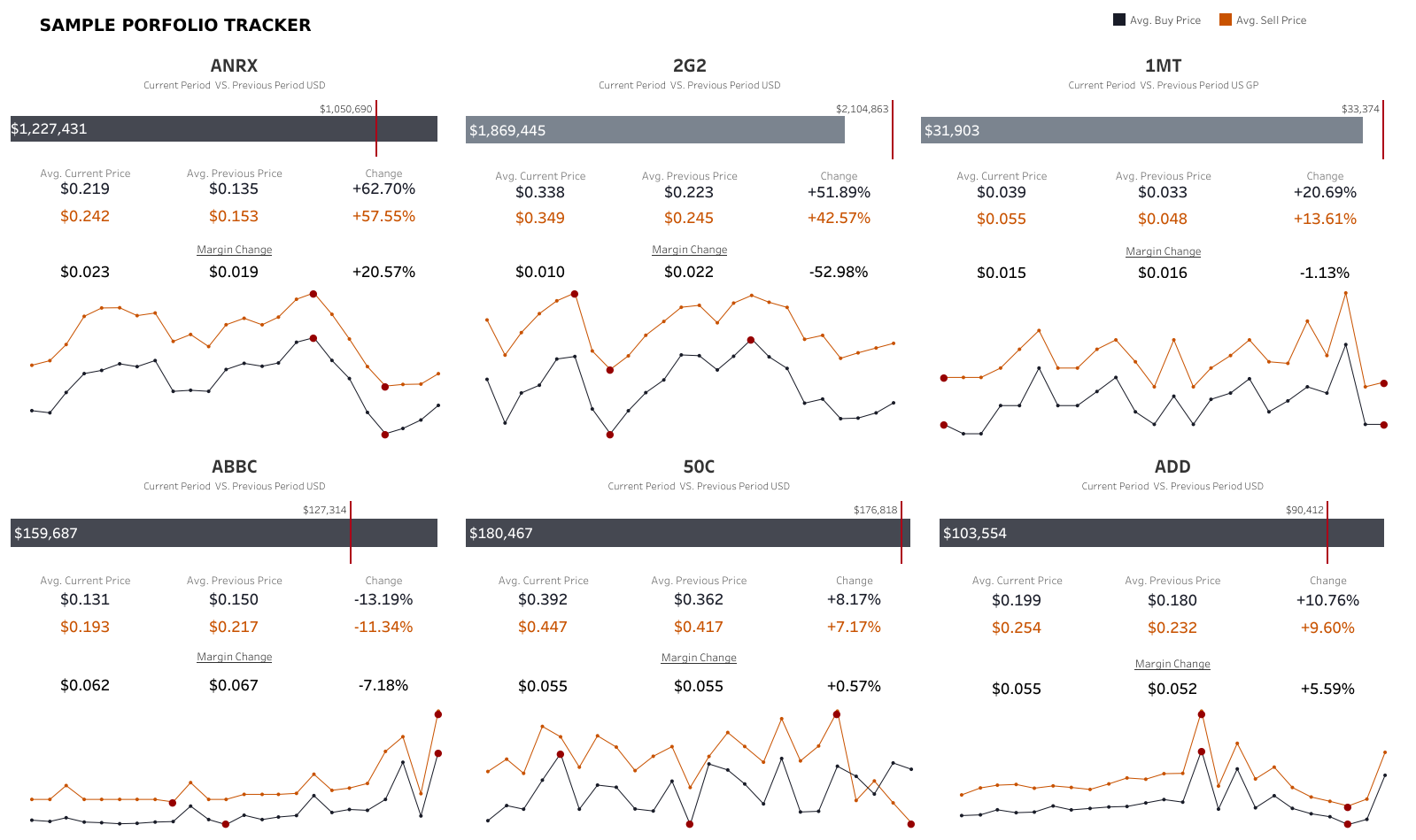 Use case: This view shows the audience whether or not we are increasing or decreasing our average margin per commodity to spot problematic investments, buying vs. selling trends, and whether we are on track to surpass last year's performance.