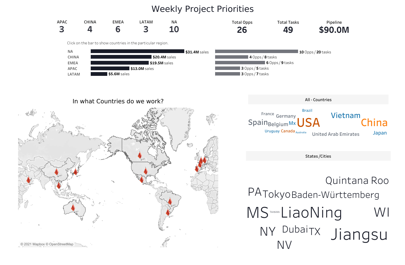 Use case: This map shows us our best-performing regions and in what countries we have a presence. It could be great to show where to allocate resources.